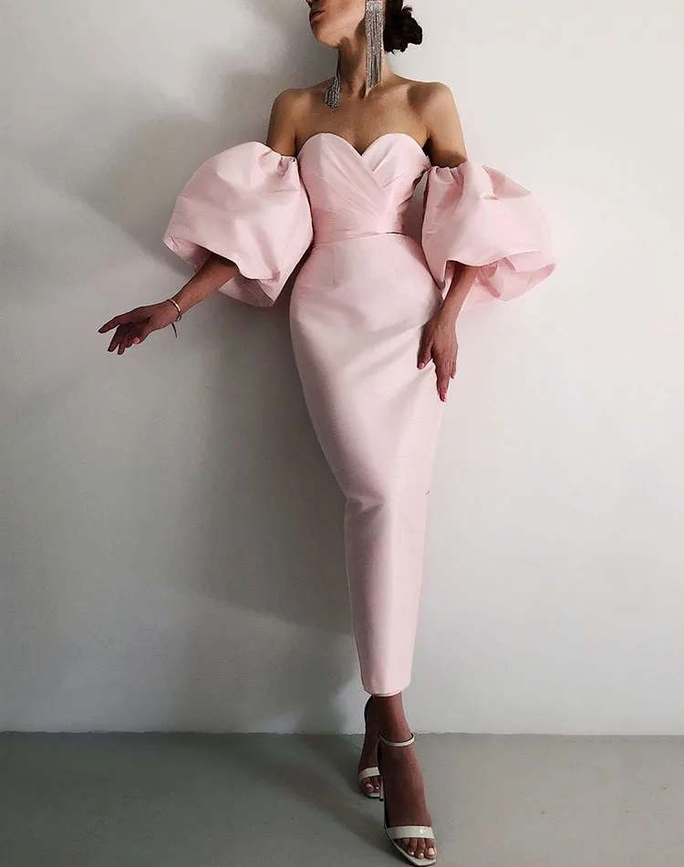 2022 New Women Fashion Off Shoulder Black Dress Sexy Lantern Sleeve Pink Club Celebrity Evening Designer Elegant Party Dresses
