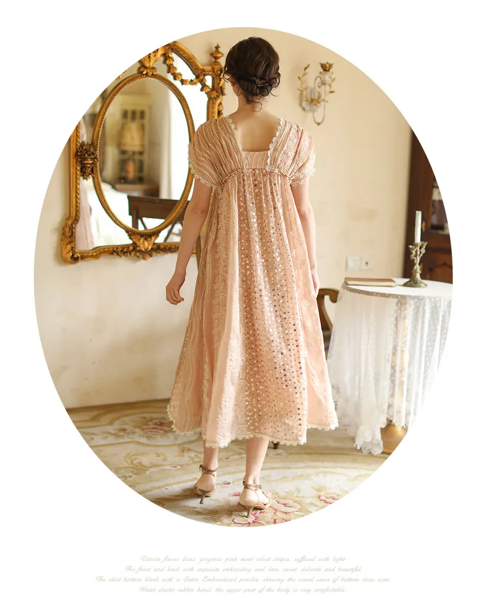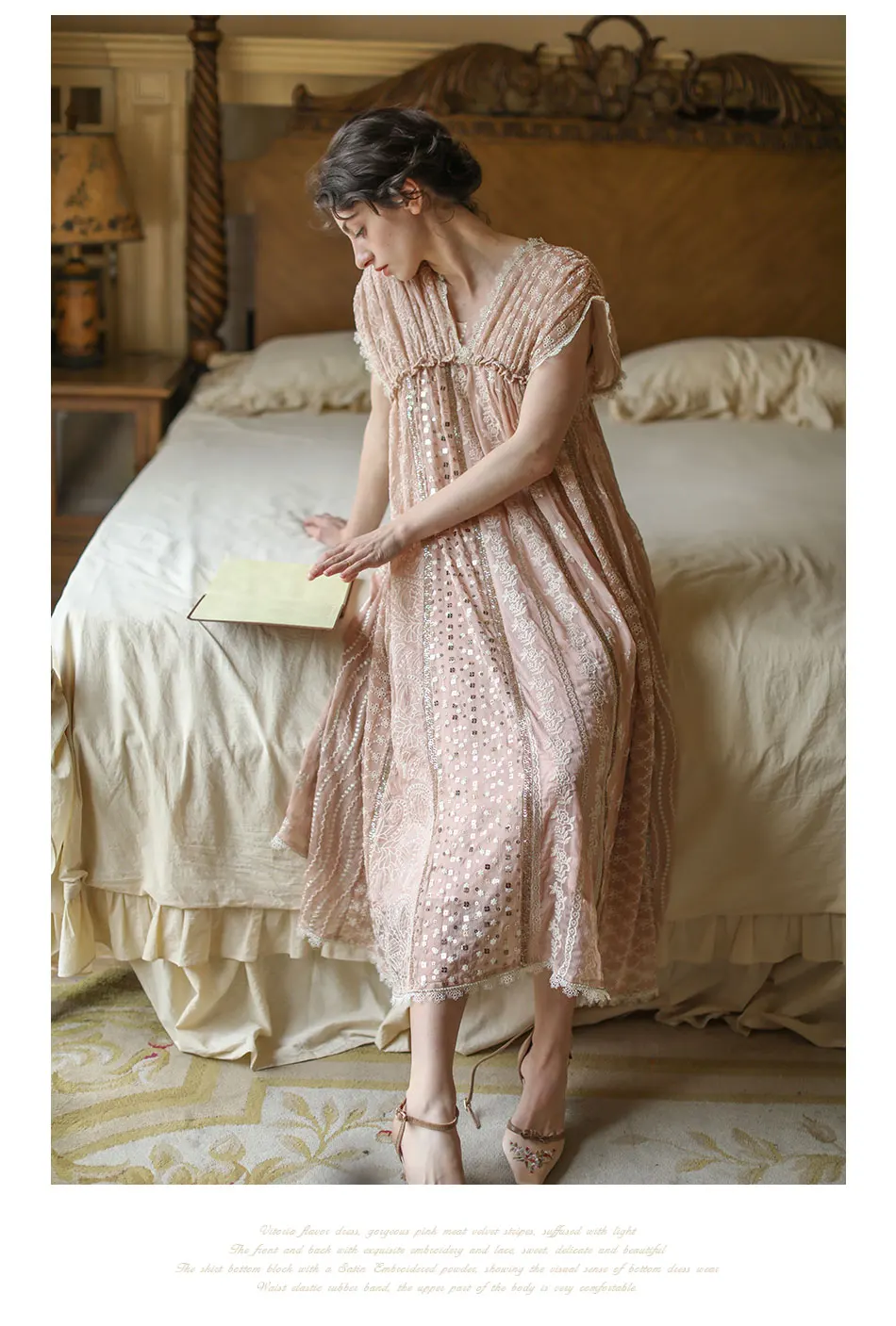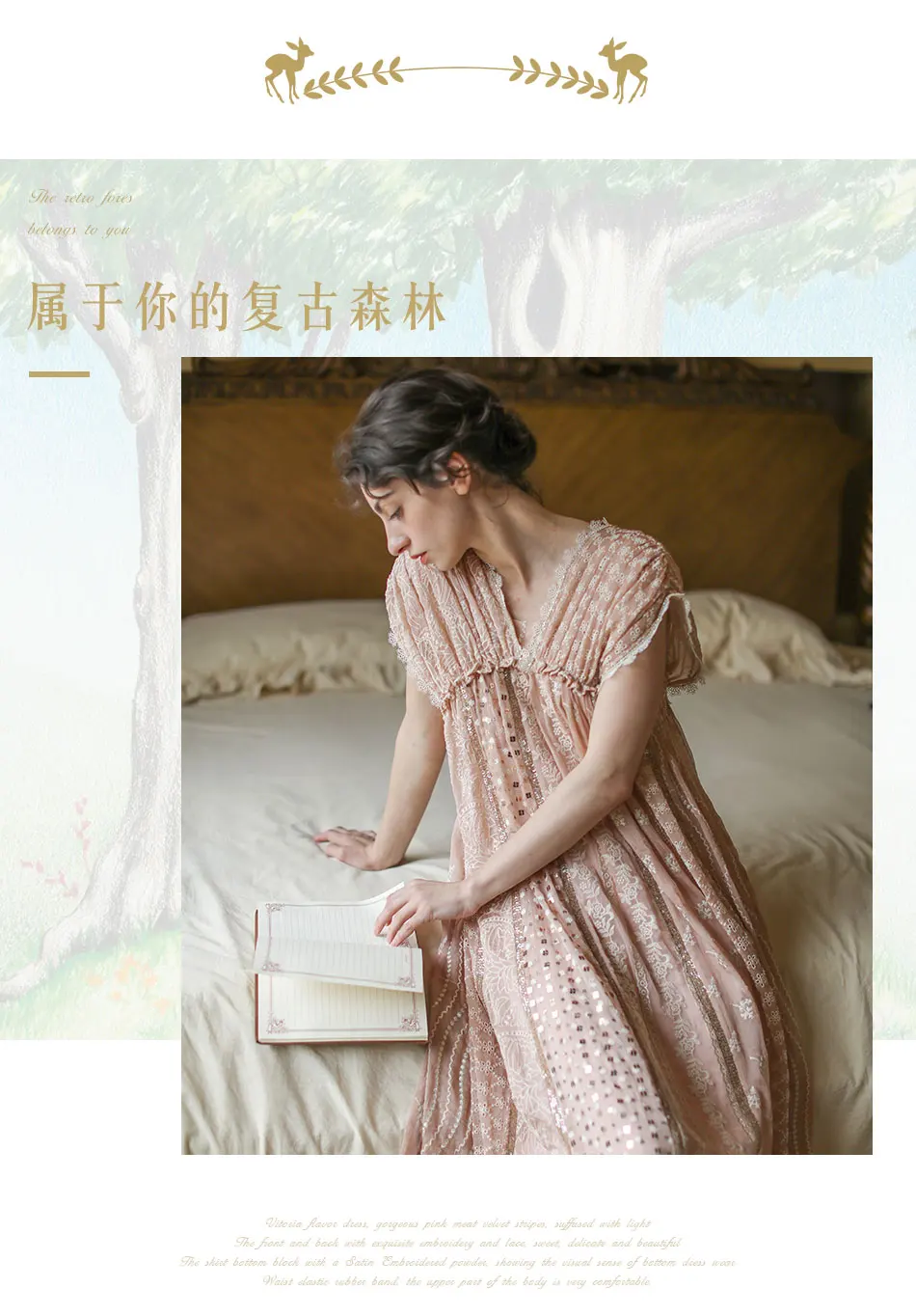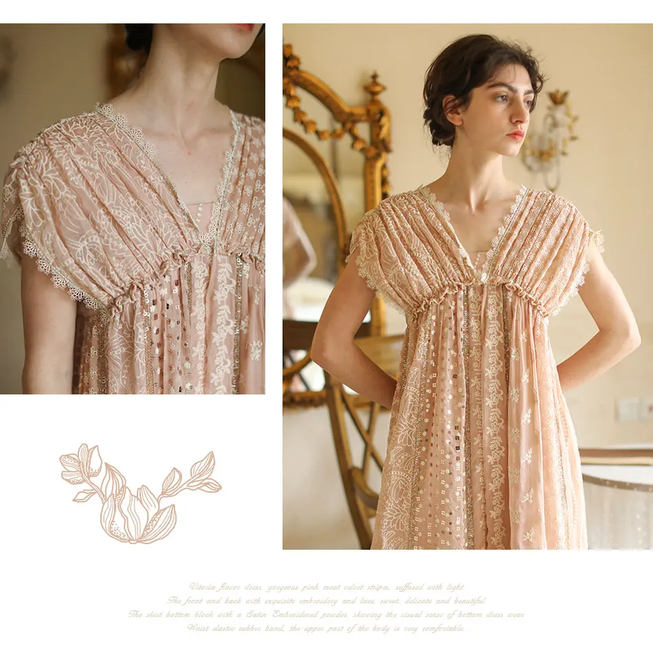 AIGYPTOS Spring Summer Women Pink Dress Vintage Elegant Slim Lace V-Neck Shiny Sequines Luxury Embroidery Party Birthday Dress