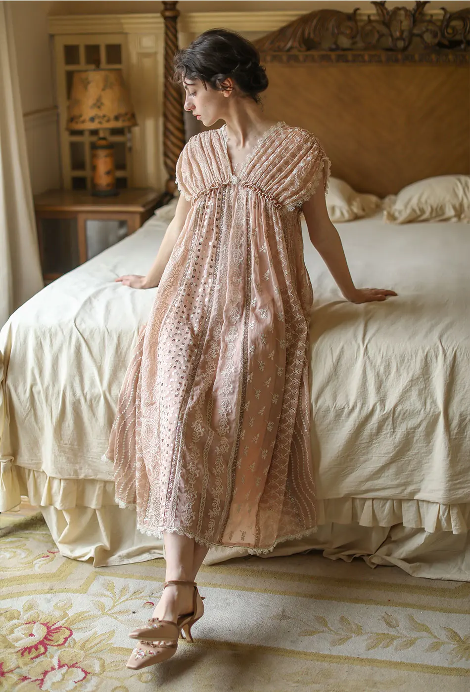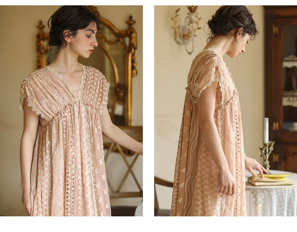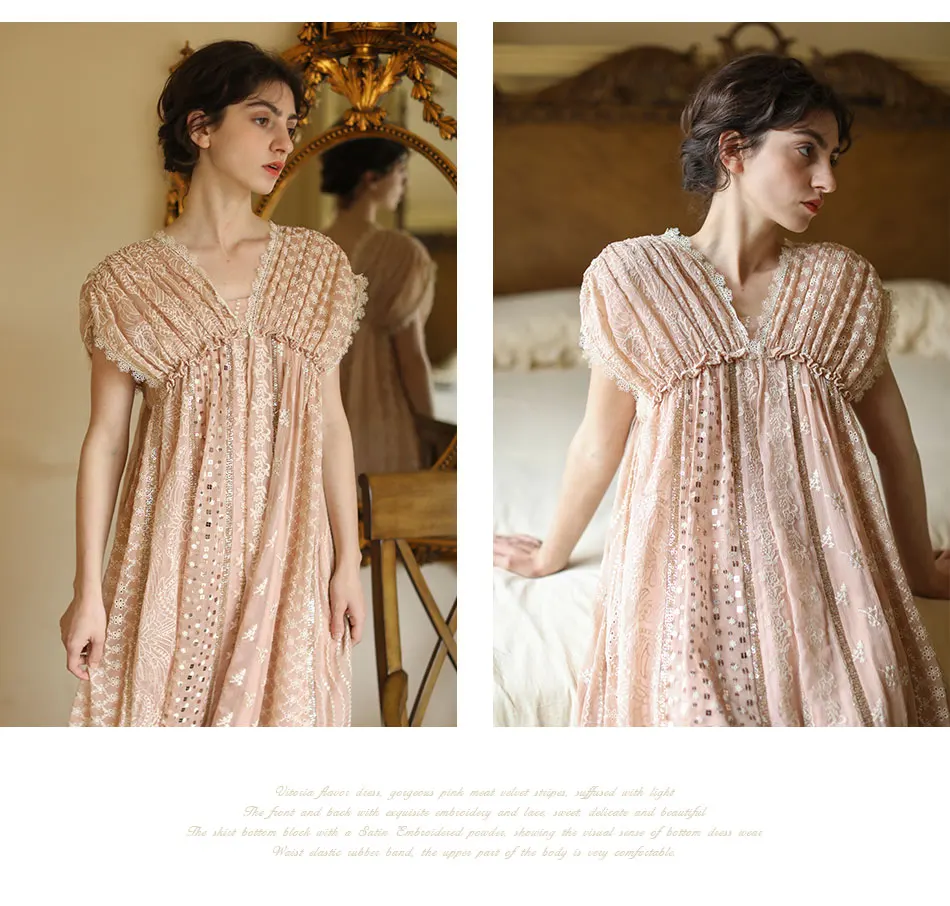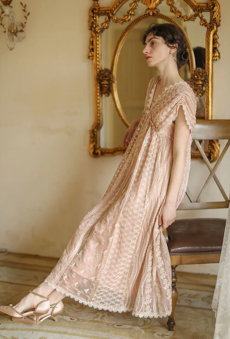 AIGYPTOS Spring Summer Women Pink Dress Vintage Elegant Slim Lace V-Neck Shiny Sequines Luxury Embroidery Party Birthday Dress
