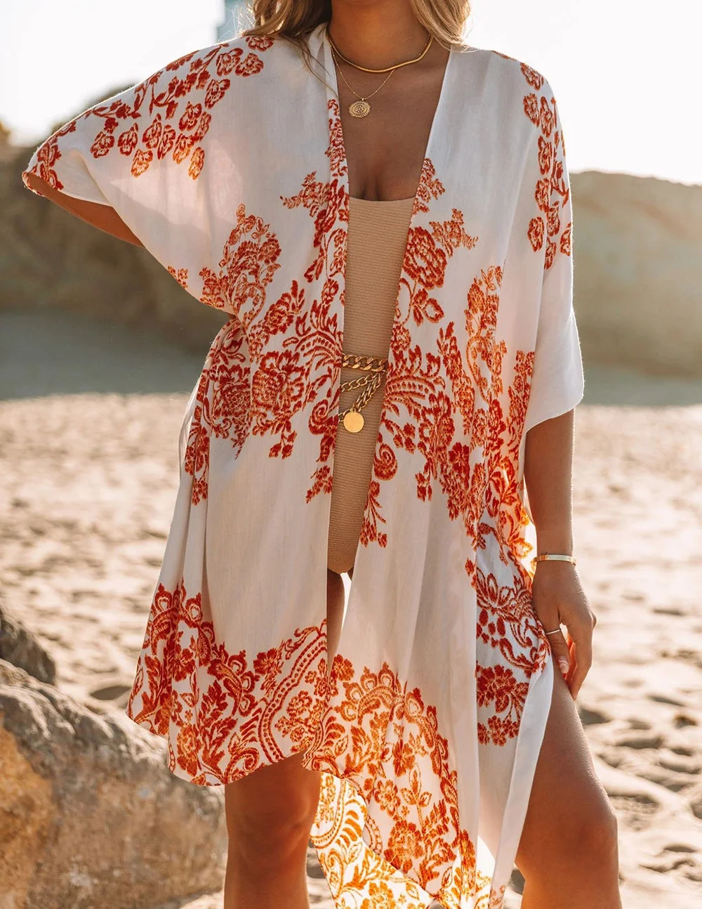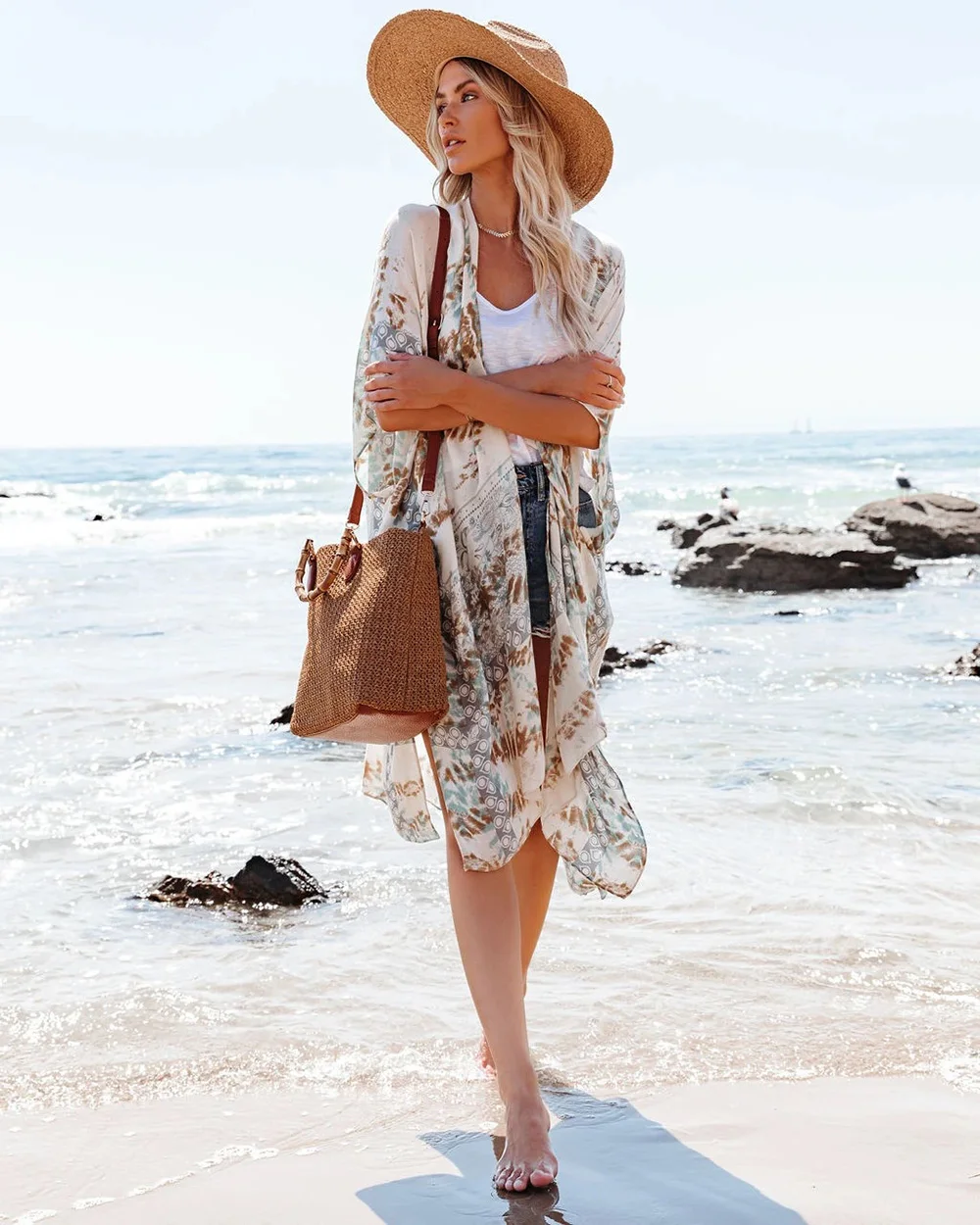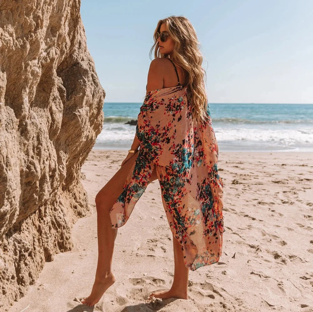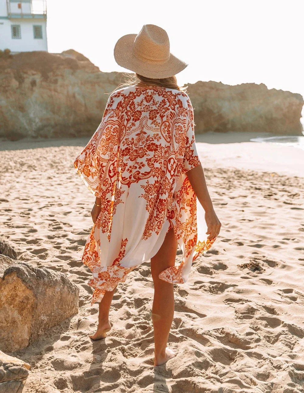 Boho Sexy Swimsuit Cover Up Beach Outing Fashion Print Bikini Cover-ups Kimono 2023 Women Beachwear Swimwear Pareo Woman Clothes
